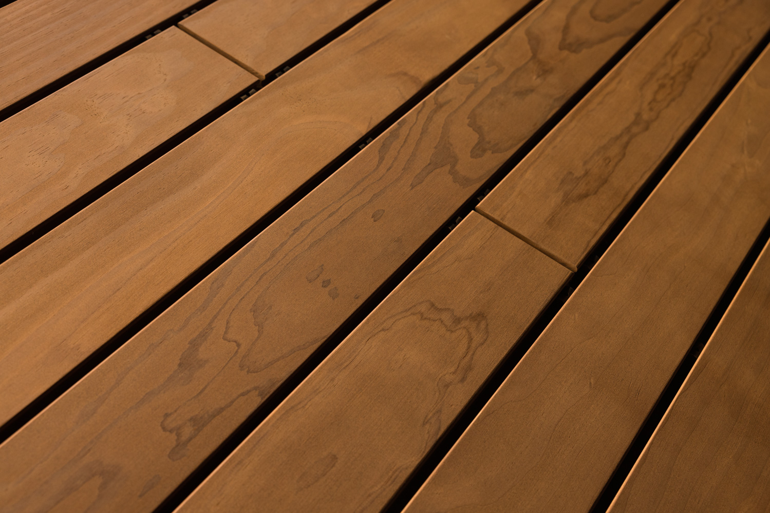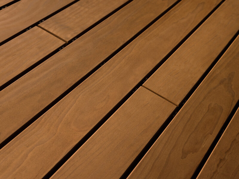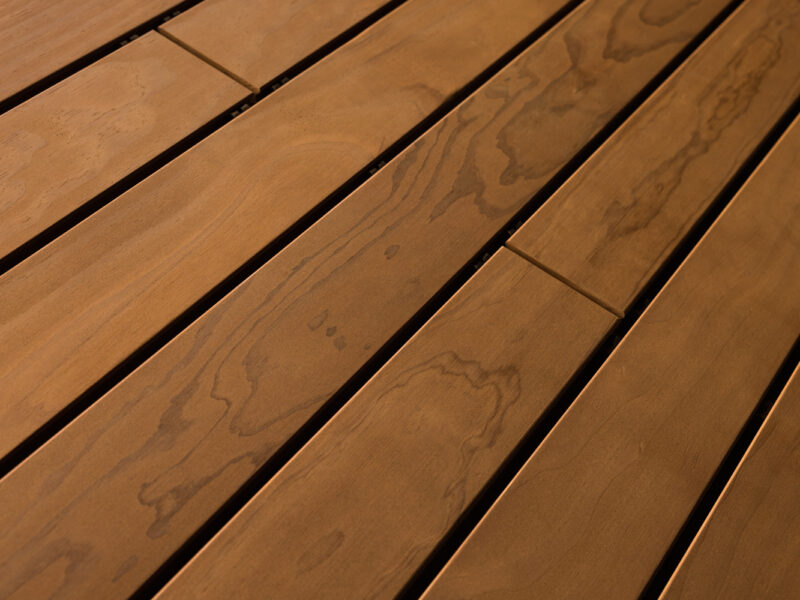 Technologie Kebony® trvale mění buněčnou strukturu dřeva, čímž mu dodává prvotřídní vlastnosti a tmavě hnědou barvu. Výhoda: Kebony nevyžaduje žádné další ošetření kromě běžného čištění. Kebony je velmi tvrdé, velmi odolné a trvale krásné – to nejlepší pro terasy, obruby bazénů, mola a nábřeží. Při přímém vystavení povětrnostním vlivům dřevo časem získává elegantní stříbřitě šedou patinu. Čokoládově hnědou barvu lze zachovat pomocí olejů s UV ochranou. Zejména při venkovním použití je vzhled dřeva ovlivněn místními povětrnostními podmínkami, které mohou různým způsobem měnit barvu a povrch.